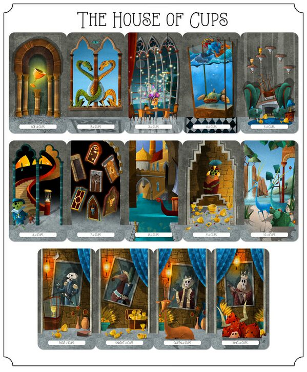 Inspired Italo Calvino’s The Castle of Crossed Destinies, The Tarot of Crossed Destinies is a deck that leans into history without imitating it. Staying true to his style, Andrea’s aesthetic nods to the past, but here that sensibility is less nostalgic and more structural. Just imagine you’re visiting a castle of mystical origin where the rooms are constantly changing. Just looking through the cards, it really felt that I’m exploring the castle rather than just flipping cards from a deck.